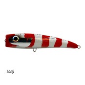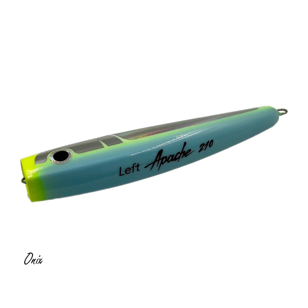 ポッピング、ダイビング、スイミング。引き手のアイデアにカラフルな挙動で応えてくれるマルチスイミングポッパー。カップを活かしたポッピング、ロングジャークでは水面直下で長く泡を引くバブルトレイル、弱い入力にはフラフラダイビングアクション。高速リトリーブでは水面の空気を噛みながらのスイミングに移行する。アピールと食わせの相反するファクターを一本のスティックベイトに込めたアパッチはアングラーの感性を豊かに表現してくれる。